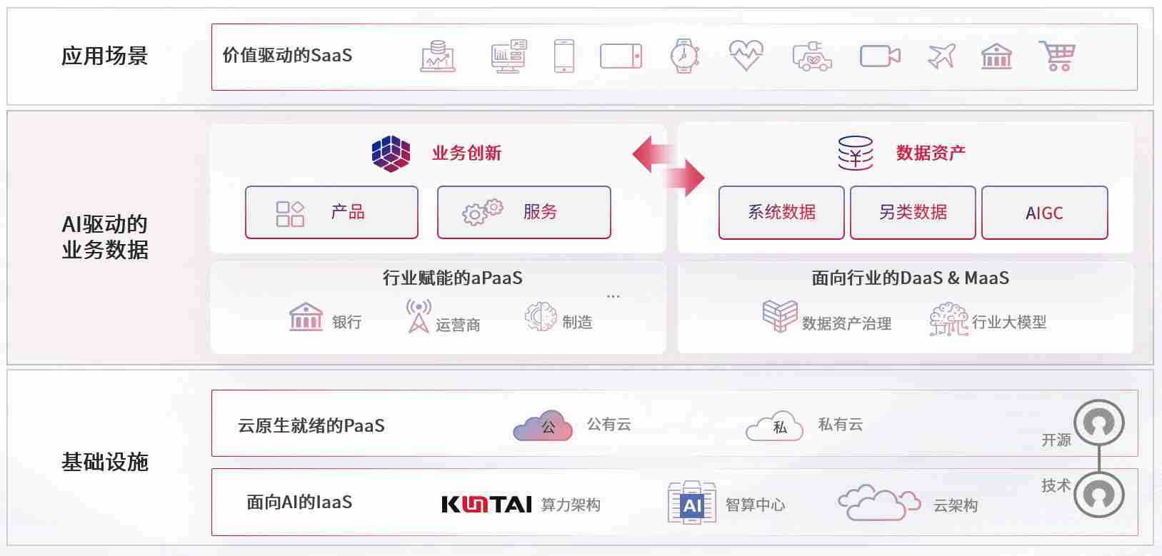 数字时代,,围绕企业数字化转型的关键要素,,,z6com尊龙数码开创性的提出数云融合战略和技术体系框架,,,,着力在云原生、、、数字原生、、、、AI原生和信创产业上架构产品和服务能力,,为处在不同数字化转型阶段的快消零售、、、汽车、、金融、、医疗、、政企、、教育、、、运营商等行业客户提供泛在的敏捷IT能力和融合的数据驱动能力,,,构建跨界融合创新的数字业务场景和新业务模式,,助力企业级客户建立面向未来的核心能力和竞争优势,,全面推动社会的数字化、、、智能化转型升级。。。